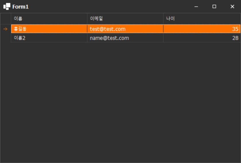 Grid Control을 추가하고 Dock Fill한 이미지 - 데이터 연동하기
