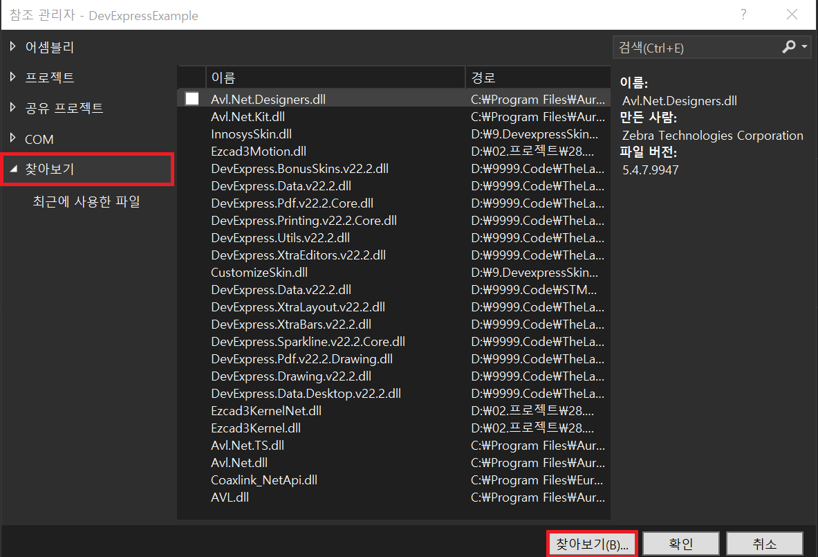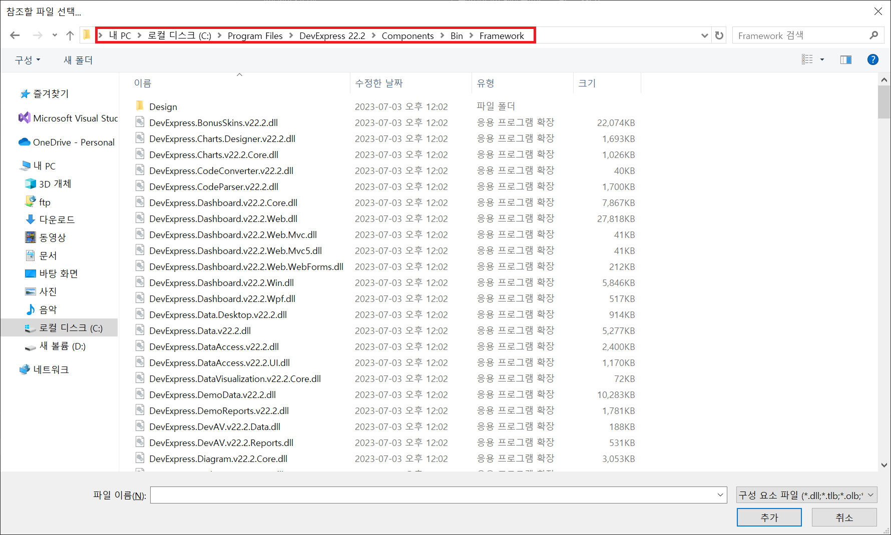 설치 경로에서 사용하고 싶은 dll에 대해 직접 추가하여 사용